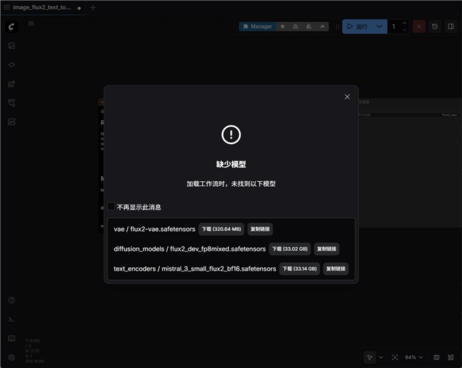 ComfyUI 并未内置这些权重文件,而是在需要时从 Hugging Face 等仓库中按需下载。这些文件体积通常很大(FLUX.2 根据版本不同,大小可能超过 30GB),因此系统需要具备足够的存储空间,并预留相应的下载时间。