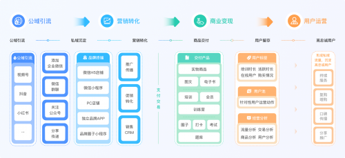 作为私域运营解决方案领域的代表性产品,小鹅通以其“产品驱动”的理念,为企业提供了一套从公域引流到私域精细化运营的一体化SaaS工具。