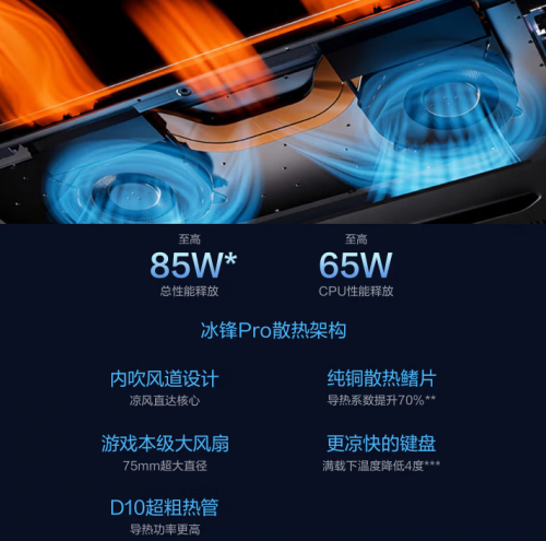 散热方面,采用华硕冰锋Pro散热架构,拥有双风扇双热管、75mm游戏本级大风扇、D10超粗热管、纯铜散热鳍片以及内吹风道设计,即便在连续渲染或高负载应用下,也能保持机身凉爽与系统流畅,有效避免因过热降频导致的卡顿,实现至高85W强劲性能释放。