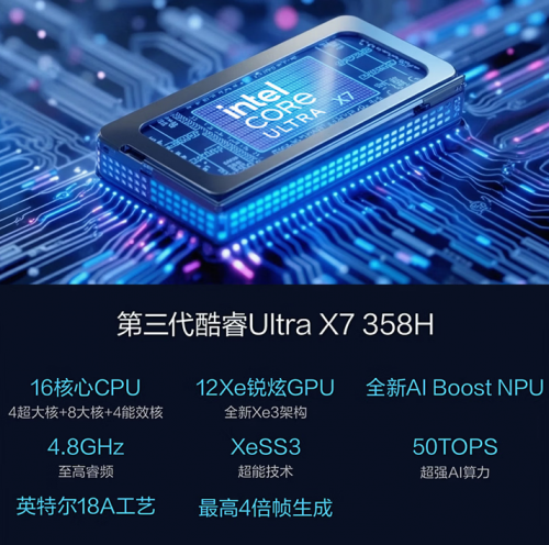 为进阶应对多任务处理、视频剪辑、主流网游等高强度用机场景,华硕无畏Pro16 2026配备第三代英特尔酷睿Ultra X7 358H处理器,基于先进的英特尔18A制造工艺,16核心CPU释放强大的单核、多核性能;英特尔锐炫高能显卡B390凭借12个Xe核心、XeSS3图形技术、强大媒体引擎,保障日常图形处理与视频编解码的流畅;AI Boost NPU带来至高50 TOPS NPU AI算力,专责于本地AI任务的快速响应,三者协同以至高180 TOPS AI总算力,以卓越AI算力,全能应对多场景挑战。