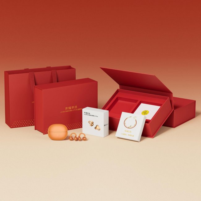 年货节期间,荣耀耳夹耳机2 Pro还推出了全新霞光橙配色及马年春节限定礼盒,寓意暖光映福、马到“橙”功。礼盒内含荣耀耳夹耳机2 Pro、小福马联名手链、小福马纪念金币,并有霞光橙、天青釉、玫瑰金三款时尚配色可选,原价749元,年货节优惠价 636.65元,以橙意好礼携美好赴新春。