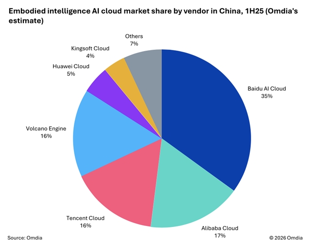 2月9日消息,国际权威市场研究机构 Omdia 最新发布的《中国具身智能AI云市场 1H25》报告显示,百度智能云以35%的市场份额位居中国具身智能AI云服务市场卓越,领先优势超过第二名两倍以上。在具身智能加速从技术验证走向工程化落地的阶段,这一结果被视为产业底层能力分化的重要信号。
