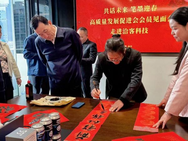 春启新章,智汇同行。2月8日,深圳市企业高质量发展促进会以“共话未来·笔墨迎春”为主题的会员见面会走进监事长单位——深圳洽客科技有限公司,通过书法艺术与深度交流的融合,为会员企业搭建起一座凝聚共识、共谋发展的桥梁。活动以文化为纽带,以创新为底色,既展现了洽客科技作为行业领军者的责任担当,也为新一年高质量发展注入强劲动能。