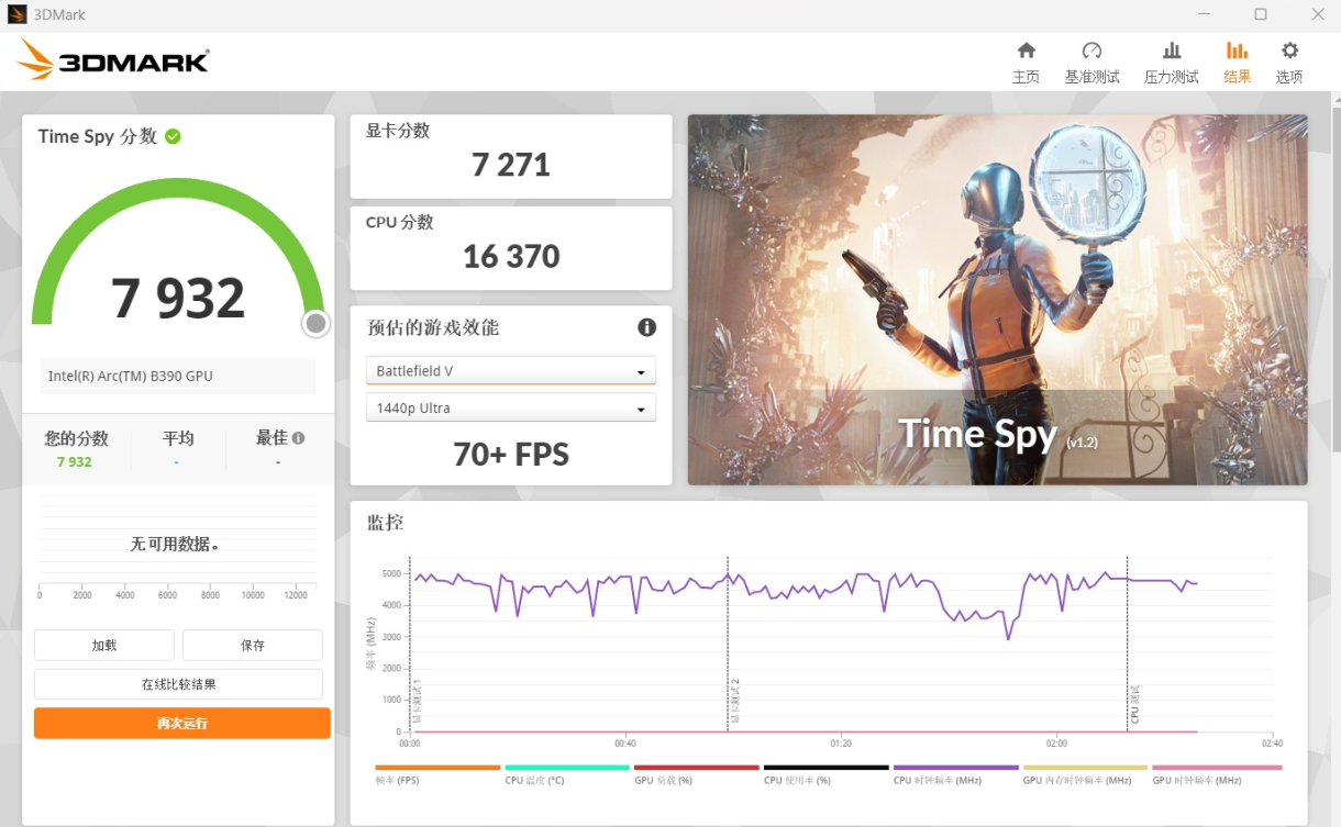 性能突破:核显实力颠覆认知酷睿Ultra X9 388H处理器采用Intel 18A制程16核心16线程设计,由4个性能核、8个能效核与4个低功耗能效核组成,其集成的Intel Arc B390核显,基于全新Xe3架构,实现了图形性能的代际飞跃。3D Mark Time Spy测试中,其7271分的图形得分相比上代提升88.5%。实际游戏测试印证了理论性能的提升。在《黑神话:悟空》中,开启XeSS超采样与帧生成技术后,游戏帧数可达210帧;《赛博朋克:2077》在同等技术加持下,帧数可达到250帧。这意味着该机已能流畅驾驭多数主流3A游戏,打破了轻薄本不适合运行大型游戏的固有印象。