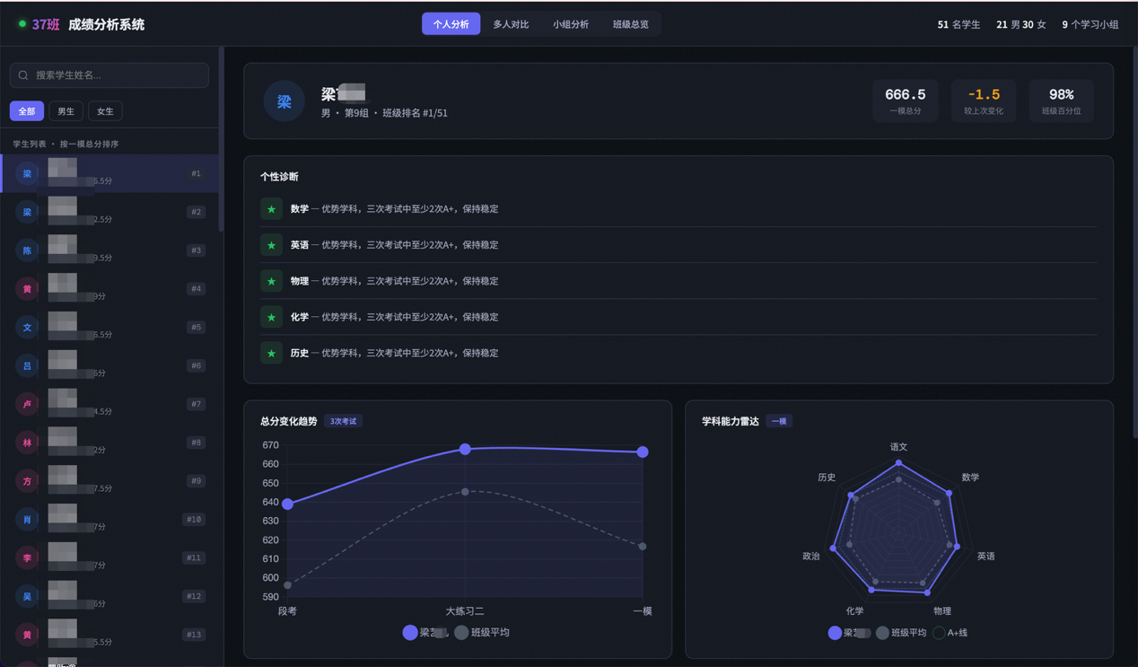 (QoderWork帮助初中老师生成班级成绩分析系统)