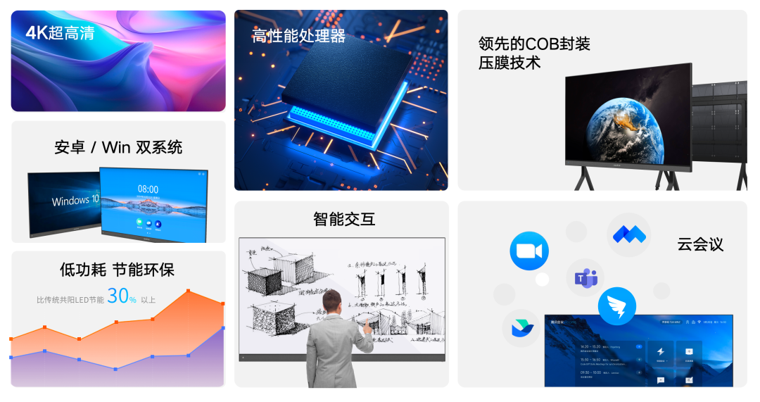 在技术实现上,ND系列依托领先的COB集成封装与自研像素引擎技术,实现了画质、可靠性与交互体验的全面跃升。其具备的3840Hz超高刷新率、全贴合防眩光屏幕及IP65级防护,确保了在明亮环境与多角度下画面的清晰、稳定与耐用性,满足高强度、长时间使用的严苛要求。同时,一体化集成的高精度触控与流畅的书写协同体验,使其从“单点显示设备”真正进化为支撑关键任务的“空间协同系统”。