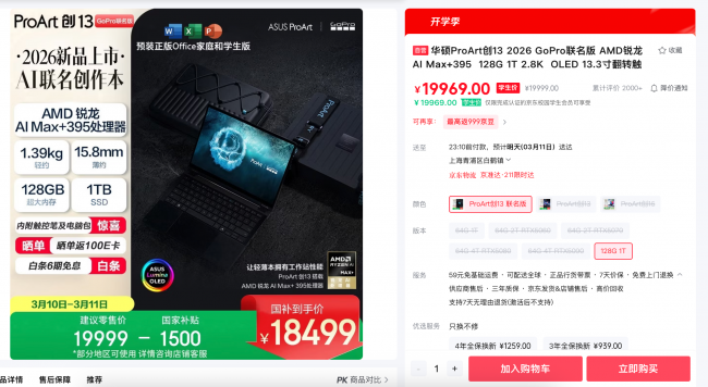 当前购机,支持晒单返100E卡、白条6期免息福利,部分地区可领取至高1500元国家补贴,到手18499元(内附触控笔及电脑包),详情可咨询客服。