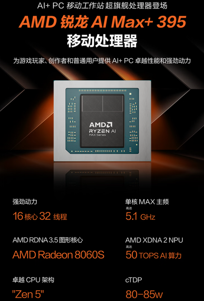 针对内容创作者对于性能的严苛考量,华硕ProArt 创13 GoPro联名版配备AMD锐龙AI Max+ 395移动处理器,基于“Zen5”CPU架构,拥有16核心32线程,最高主频可达5.1GHz,多任务处理能力出色。集成AMD Radeon 8060S高端旗舰级集显,基于RDNA 3.5架构,拥有40组图形计算单元,性能媲美移动端独立显卡;内置AMD XDNA 2 NPU,提供50 TOPS AI算力,助力畅享内容创作、游戏与AI应用等全场景卓越体验。在华硕冰锋Plus散热架构的加持下,带来至高85W强劲性能释放,轻松适配多元创作场景。搭配至高128GB LPDDR5X 8000MT/s内存和1TB PCle 4.0高速SSD,进一步加速系统及大型应用程序响应速度,并提供海量存储空间,流畅运行AI绘图、3D建模等高负载创作任务,为持续迸发的创作灵感提供强大性能支撑。