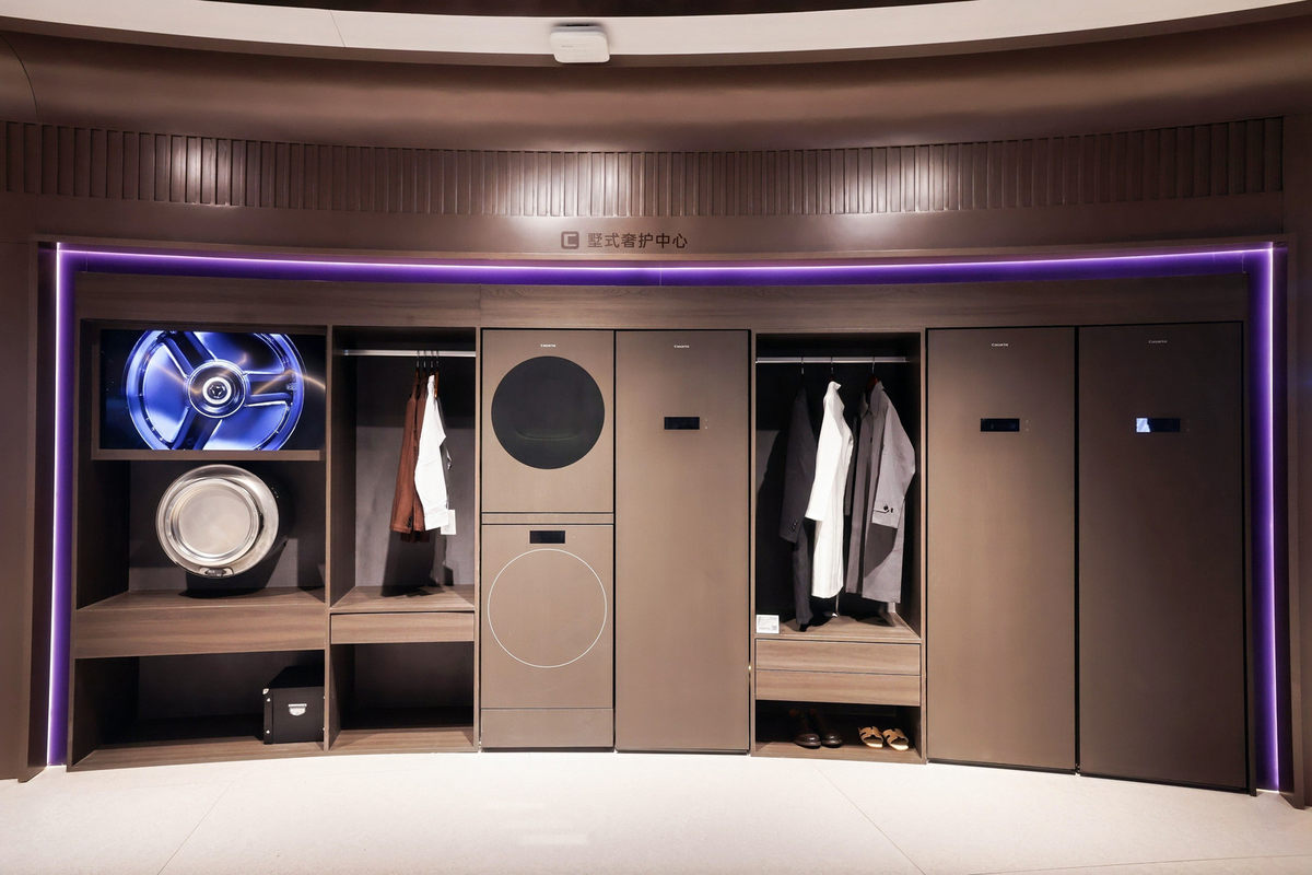 恰逢创牌20周年,卡萨帝于2026年中国家电及消费电子博览会(AWE2026)上推出20年限定款藏家套系。卡萨帝藏家墅式奢护中心作为该套系的核心单品,以“无界隐嵌”的空间融合设计与“洗烘护养”全周期奢护实力,为顶奢人群带来全维度解决方案,进一步解放家务。