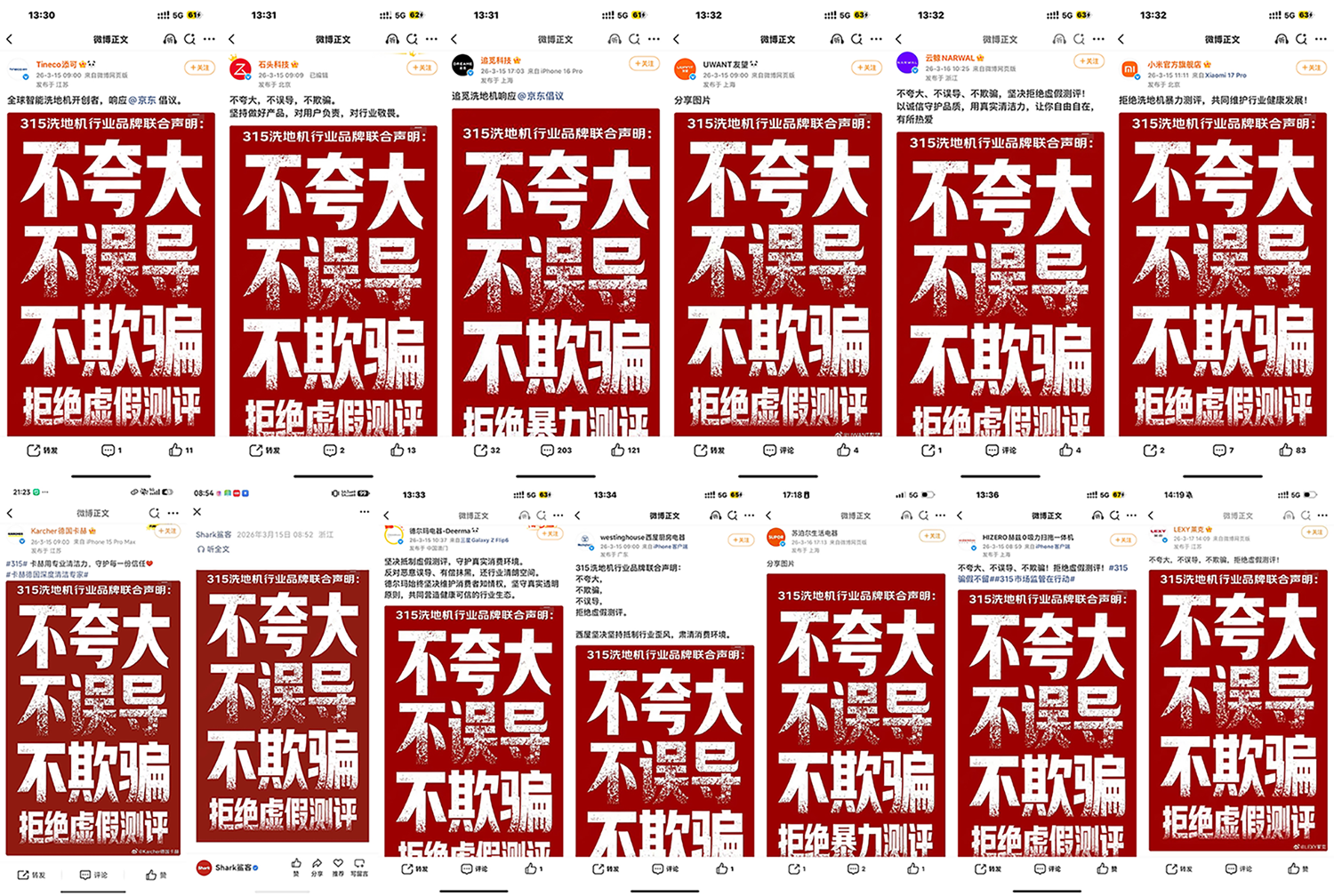 京东联合13大洗地机品牌共同抵制虚假评测行业乱象,不仅是一次正面回应,更是在推动洗地机行业重新厘清“测评”与“营销”的边界,促使行业竞争回到产品能力、技术创新和使用体验本身。京东希望与品牌共同推动测评内容回归真实、消费决策回归理性、行业竞争回归有序,持续助力洗地机行业朝着更加透明、规范、健康的方向发展。