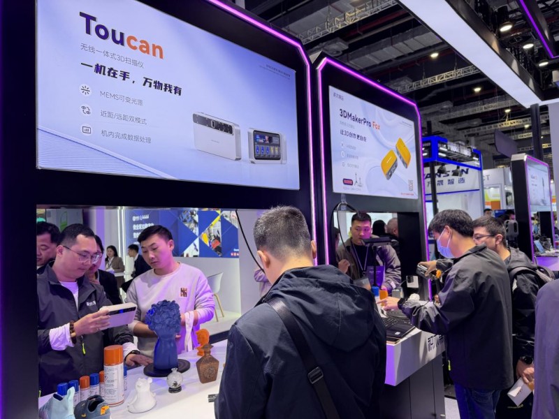本次展会上,积木易搭两款新品3DMakerpro FOX与RayZoom G50迎来国内首发。3DMakerproFOX定位为入门级手持三维扫描仪,RayZoom G50则定位为轻量级三维空间扫描仪,两款产品兼顾市场用户对于单体三维扫描与空间三维扫描的入门普及需求,标志着积木易搭进一步拓宽产品布局。