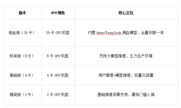 从2卡到16卡,四档火力,精准覆盖了从"先试试AI"到"All in大模型"的全部企业需求光谱。