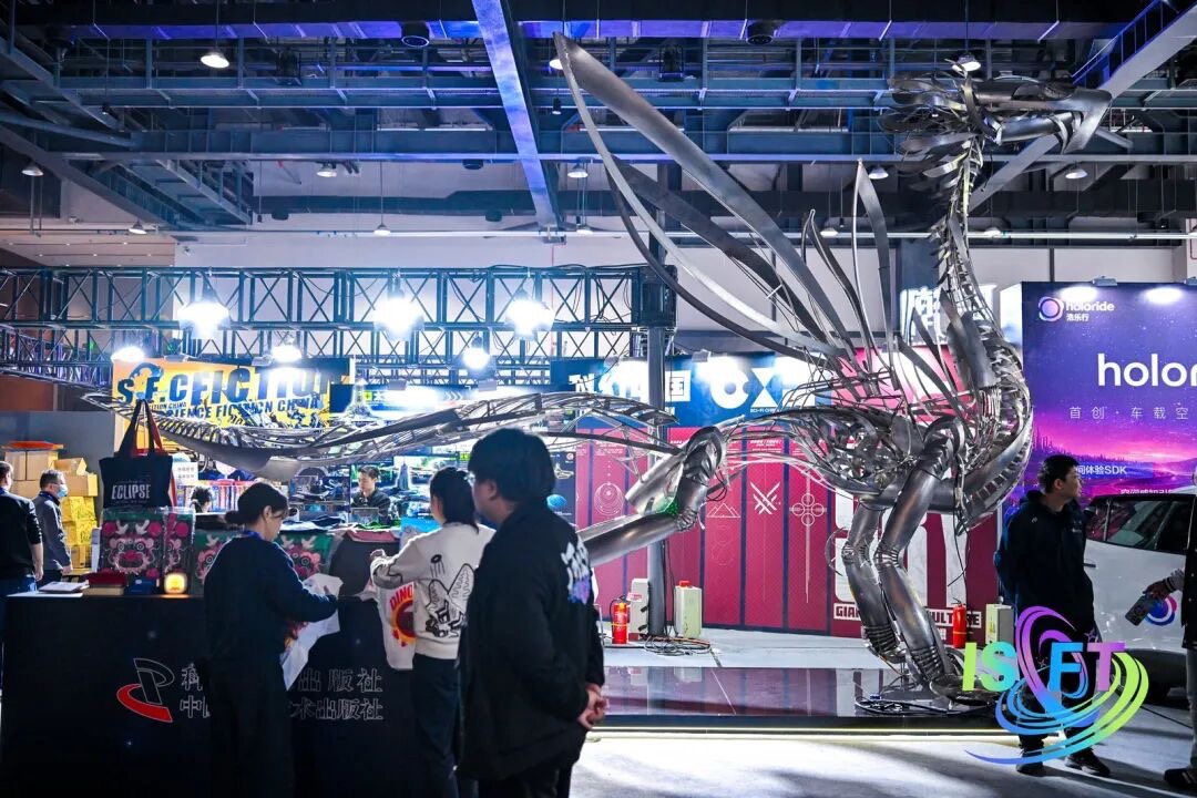 未来体验展区以先进科技赋能科幻文化体验与未来消费场景打造,构建“体验 — 互动 — 消费”无缝衔接的产业生态,让科幻文化成为先进科技与未来消费产业融合的新载体,激活文化消费与科技消费双重市场。由著名科幻作家刘慈欣、王晋康领衔的元宇研究院,倾力打造“科幻中国”展位,集结科幻文学、机甲艺术、科技科学、科幻游戏四大类成果,尽显中式科幻创作实力;浩乐行携手法雷奥重磅推出全球首款量产车型原生集成 XR Gaming 应用,在其主导的技术体系下,通过零额外硬件与虚实同步能力,将出行时间升级为沉浸式娱乐体验,开启虚实共生的未来出行新范式;鸿蒙智行带来兼具科技感与体验感的智能出行产品与交互体验方案,将未来出行与沉浸式体验深度结合;浙江大学出版社携“中国历代绘画大系”数字化成果亮相,通过虚拟现实、混合现实等技术打造沉浸式画境空间与数字美育体验,实现中华优秀传统文化与未来科技体验的完美融合;酷库智能机器人以AI与大数据技术为驱动,推出咖啡、奶茶、冰淇淋等智能饮品机器人,凭借标准化出品、云端管控和多场景适配能力,推动餐饮智能化革新,产品已服务全球40多国,并获多项科技创新荣誉,参与2025全国十五运、2026APEC广州、2026全国两会等重大会议服务工作;云摩艺术科技带来 X-Uni 云摩超维舱沉浸式数字交互体验舱,以 AI 技术为核心打造高坪效沉浸式体验解决方案,适配文旅、展示等多元场景,让观众零距离感受数字交互的前沿体验;天枢寰宇携原创航天 IP + 航天科幻 XR 超大空间沉浸式技术成果,打造极具未来感的场景创新体验。展区打造全民参与的科幻体验“嘉年华”,让先进科技触达大众、未来产业链接消费,成为科幻文化传播与未来消费场景创新的重要桥梁,推动科幻体验从圈层走向大众。