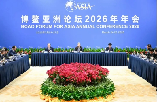 全国人大常委会委员长赵乐际26日下午在海南博鳌同出席博鳌亚洲论坛2026年年会的中外企业家代表座谈。