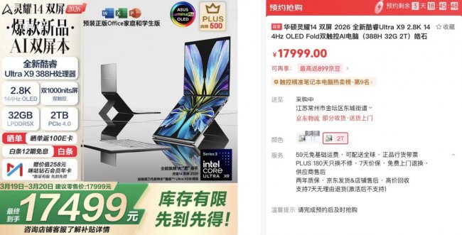#京东重磅新品日#华硕灵耀14双屏2026正式开售。上京东搜索“华硕灵耀14双屏2026”,即可了解更多产品详情。全国部分地区已参加国家补贴项目,个人消费者更有机会享受15%的优惠,详情可咨询京东在线客服了解。
