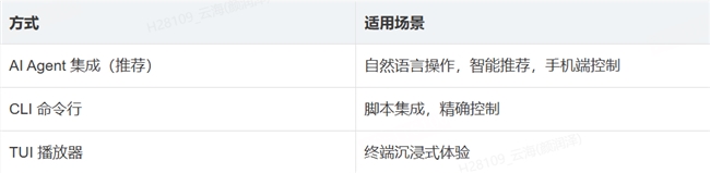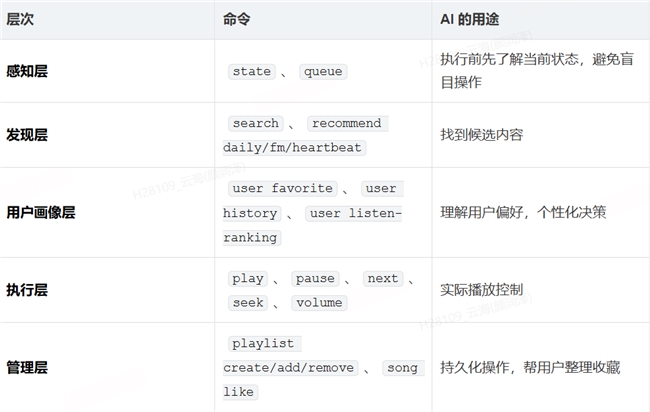 这个判断背后有一个很直接的逻辑:CLI 命令是 AI Agent 最天然的工具调用形式。一个ncm-cli play --song xxx的命令,对 Claude、OpenClaw 里的 AI、或者任何其他 Agent 框架来说,调用方式完全一样。CLI 本身不依赖任何 AI 框架,它就是一个能被任何东西调用的原子工具。