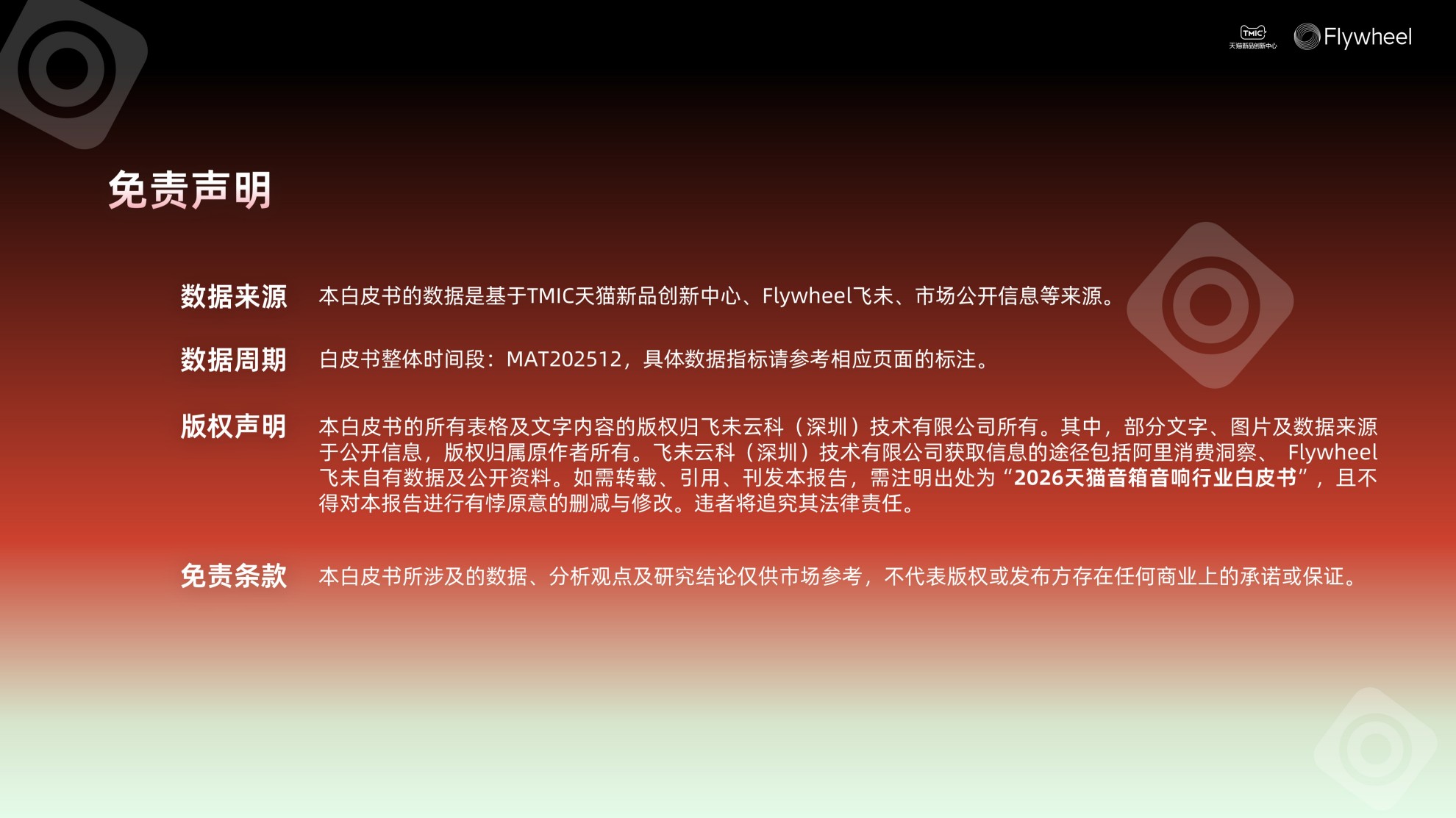 基于此,TMIC和Flywheel飞未共同发布《2026天猫音箱音响行业白皮书》,通过对音箱音响品类市场动态、技术趋势、消费心智及四大核心赛道的深度解读,为品牌创新与市场布局指明了全新方向,以期推动整个行业在智声融合、场景共生的浪潮中,持续探索声域的边界与价值的深度。
