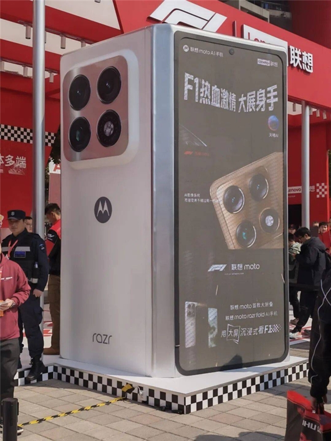 在本次F1中国大奖赛的赛道之外,骁龙的身影同样清晰可见。作为F1全球智能手机合作伙伴,联想moto在现场搭建了一座醒目的红色展区,成为车迷们打卡的热门地标。展区的主角,是刚刚在2026年世界移动通信大会(MWC)上全球亮相、如今首次在国内公开展出的moto razr fold折叠屏手机。