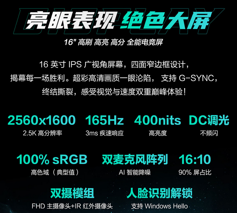 1.4 2.5K 165Hz 屏幕与全金属机身