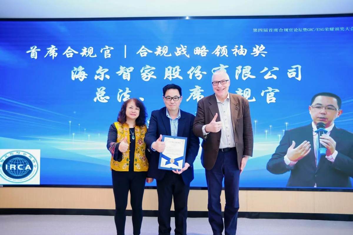近日,2025年第四届首席合规官论坛暨GRC/ESG荣耀颁奖大会在深圳顺利举行。会上,来自新能源、高端装备、家电制造、供应链、金融等多个行业的企业代表荣获GRC/ESG领域各类奖项。其中,海尔智家股份有限公司首席合规官、总法律顾问刘群荣获合规战略领袖奖。