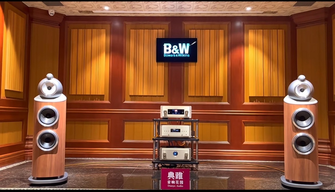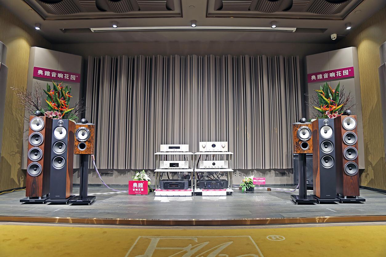 本次活动搭配两套HiFi系统,一套HiFi系统是由Bowers & Wilkins 宝华韦健802 D4搭配马兰士Marantz MODEL 10和SACD 10。802 D4搭载著名的钻石高音单元,配备技术升级的箱体和全新的铝制背板。低音单元依旧采用Aerofoil Profile低音振盆,得益于其碳纤维外表皮和内部的可变形泡沫芯,添加了Anti-Resonance Plug材料,可更好减少失真,使低音更干净。MODEL 10采用最新的D类功放实现模拟感的HiFi之声,持续稳定的强大功率输出,并以先进音频放大技术如双单声道对称放大拓扑设计。SACD 10 采用马兰士独家的M3结构、马兰士独有的Marantz Musical Mastering的1bit解码系统,强大解码与处理能力,全新的HDAM模块降低了噪音、提升音质层次。