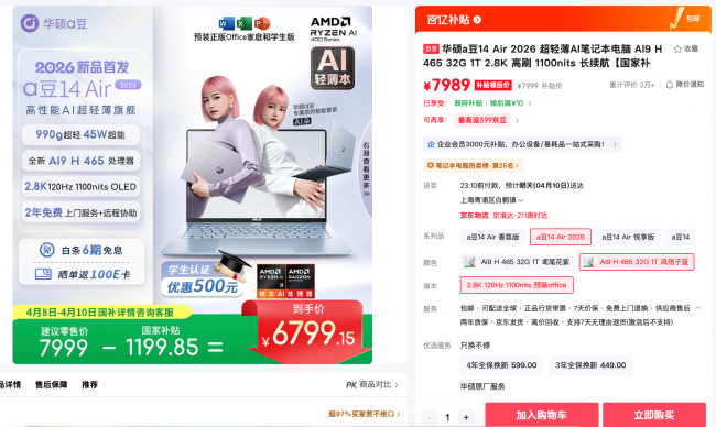 当前购机可享6期免息、晒单返100E卡,部分地区可领取至高1199.85元国家补贴,学生认证立减500元,同时还可享受a豆无忧服务计划,包含2年硬件上门服务、2年无限远程协助、2年好屏无忧换新、2年整机保修服务,入手无后顾之忧。