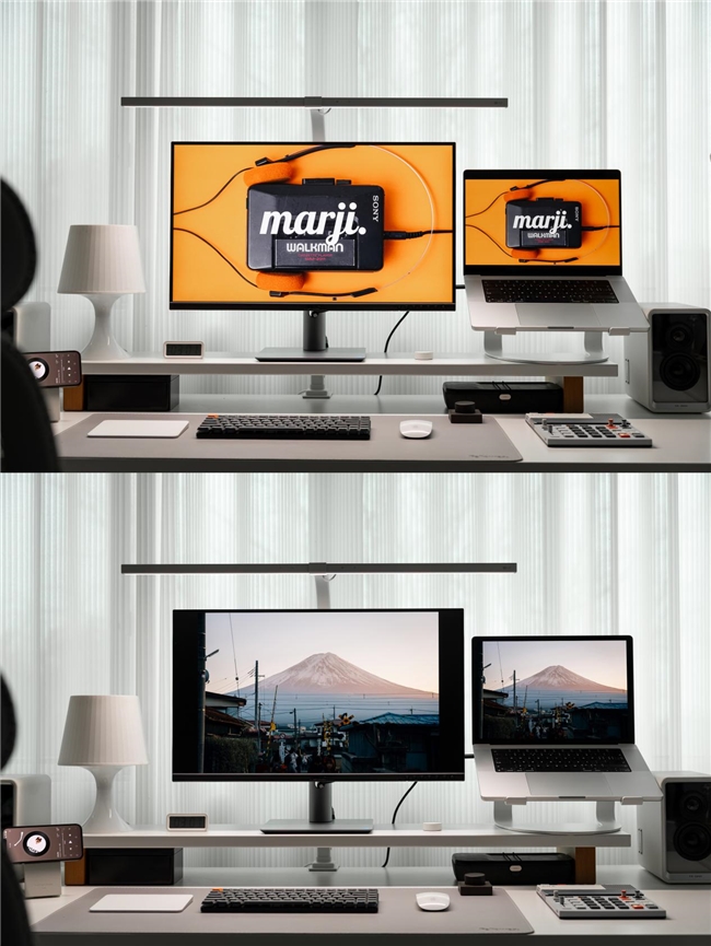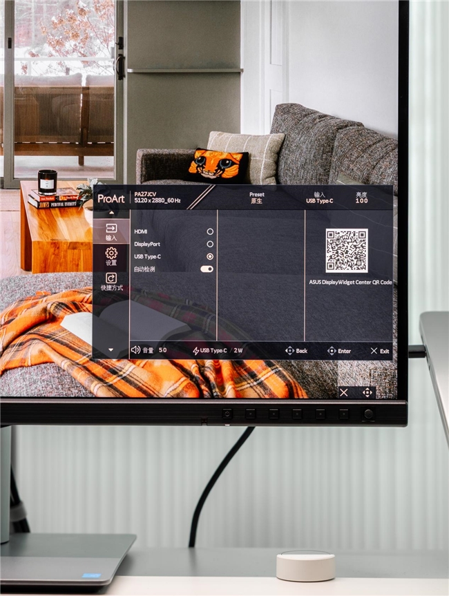 内容创作者的工作台总是布满线材:电源线、视频线、Hub线、硬盘线,像藤蔓缠绕着创作者的注意力。华硕ProArt创梦5K专业显示器的雷电接口让一切简化成“一线连接”——屏幕给笔记本供电、传输画面、读写数据同时进行。更意外的是Auto KVM功能:可以用同一套键盘鼠标,在Mac和PC之间瞬间切换,两个系统的素材库无缝调用。