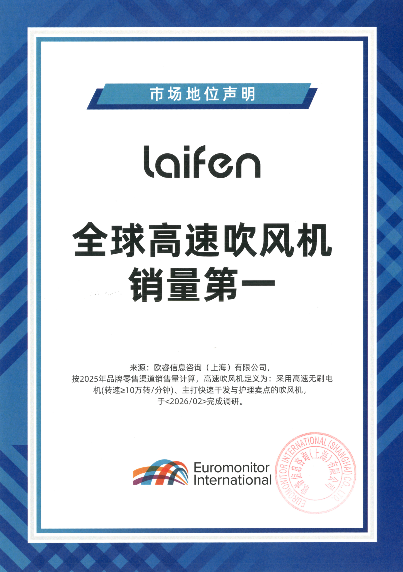 正是这种对核心技术的掌控力,带来产品性能的持续领先,让更多用户得以享受到曾经高溢价的国际大牌产品能力,深刻改变了国人的个护习惯和生活方式。市场表现成为徕芬最好的验证,2025,徕芬吹风机销量已经高居全球,在国内,徕芬同样连续三年(2023-2025)斩获中国电吹风市场线上销量市场占比,实现了对老牌巨头戴森的全面超越。这证明了在消费升级的大潮中,消费者更愿意为真正具备创新价值的国货买单。