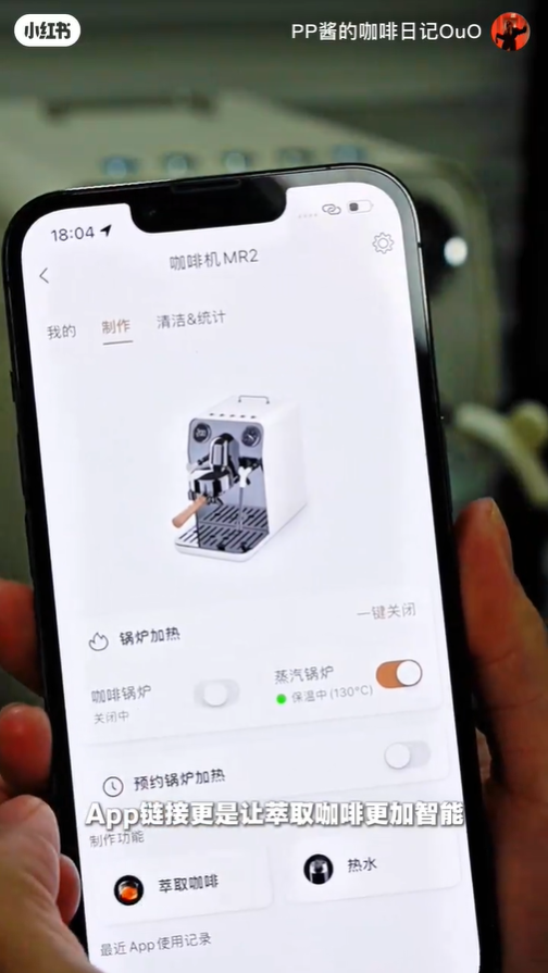 凯度热门机型MR2搭载双泵三加热系统,萃取与打奶泡可同步进行,预热速度快,连续出杯效率高;配备58mm商用级PTC热平衡式冲煮头+OPV稳压阀,萃取稳定、油脂饱满,接近专业咖啡馆表现;双孔直喷蓝色干蒸汽输出稳定,打发奶泡快速细腻,口感表现更佳。其智能化体验较为亮眼,搭载行业特色磨咖互联功能,与磨豆机HI2构建一体化智能系统,实时同步研磨数据,自动匹配最佳萃取参数,进一步降低新手操作门槛;支持APP远程控制,可自定义萃取参数,支持双锅炉独立控温、定时预热,搭配大屏显示与压力表,新手也能轻松精准操作。还配备三水路强力清洗除垢功能,日常维护更省心。