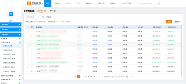 项目全过程管理:将技改、检修等核心业务的全环节上线,打通各部门、各分子公司的数据壁垒,实现业务各阶段的高效协调与衔接;