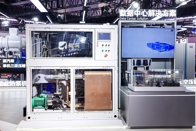 现场还带来自然冷水冷磁悬浮一体机,这是行业首台风液同源磁悬浮冷水机,依托美的高效磁悬浮离心机组与自然冷却技术,将磁悬浮离心机组、自然冷却板换系统完美结合。