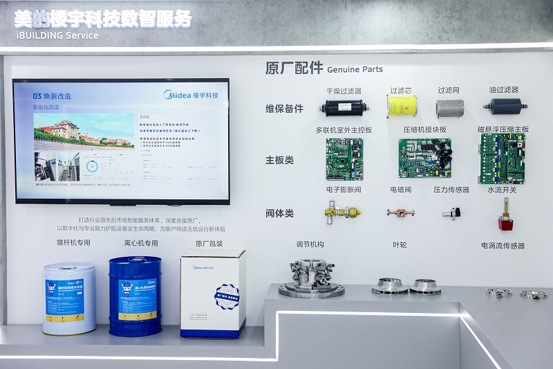 数智服务展区,美的展示了从设备到系统、从安装到运维、从硬件到软件的全链路服务能力。自研iBUILDING智慧运维平台与美的i管家,可实现节能优化、预测维护多重功效。两大平台连接基础上搭建了节能分析、健康分析、故障预警、故障诊断和核心数据分析模型,同时整合了云集控、能耗监控和故障推送等全维度设备管理功能。目前,美的已构建覆盖设备原厂安装、原厂维保、原厂维修、原厂配件、焕新改造、增值服务、B端维保培训、数字化服务的全生命周期服务体系。