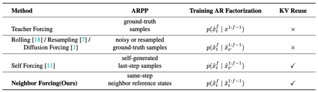 SoulX-LiveAct围绕长时间连续生成这一核心难题,采用自回归扩散(AR Diffusion)作为基础框架,并通过Neighbor Forcing机制和ConvKV Memory机制实现性能提升。模型采用按chunk逐段生成的方式,在每个chunk内部通过扩散模型完成细节建模,并通过上下文信息在chunk之间传递,实现连续流式生成。在此基础上,Neighbor Forcing机制通过对齐同一扩散步的相邻帧latent,使模型在训练与推理阶段保持一致的噪声语义空间,从而降低分布不一致带来的误差累积问题。