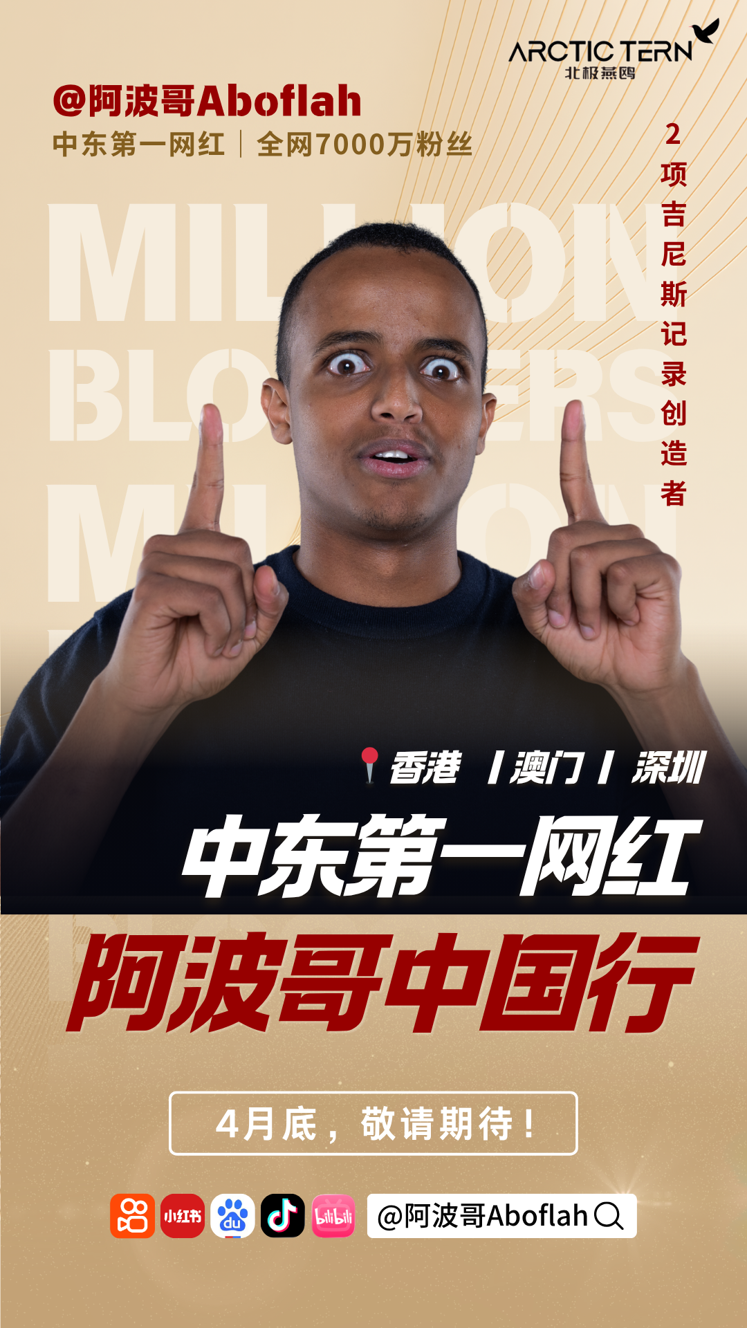 阿联酋阿布扎比王储哈立德日前抵达北京开启对华访问之际,中阿民间文化交流也将迎来又一标志性事件。据悉,拥有全网近7000万粉丝、被誉为“中东第一网红”的阿波哥(AboFlah),计划于2026年4月24日从迪拜出发,开启为期一周的中国之旅,将先后到访香港、澳门和深圳三地,将向全球观众展示一个真实、生动的中国。