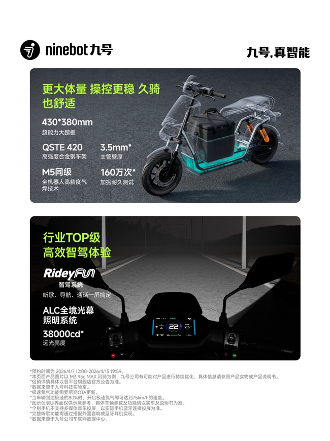 九号 M3 闪骑系列并非单纯追求速度,而是对城市骑行中装载、动力、稳定、智能四大高频痛点做了系统性优化。每一处升级都贴近日常,单看并不夸张,但放在日复一日的骑行里,省心与舒适的差距,会格外明显。