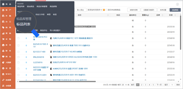 快马数字轮胎行业版建立了一套覆盖乘用车、商用车、工程车的标准商品库。所有轮胎的核心属性——品牌、口寸、花纹、用途等按统一格式录入,形成规范档案。搭建在线平台新增商品时直接从库里调用,不用重复填写,也支持批量导入导出。如果上游供应商提供数据接口,系统可以同步更新,减少人工维护的工作量。