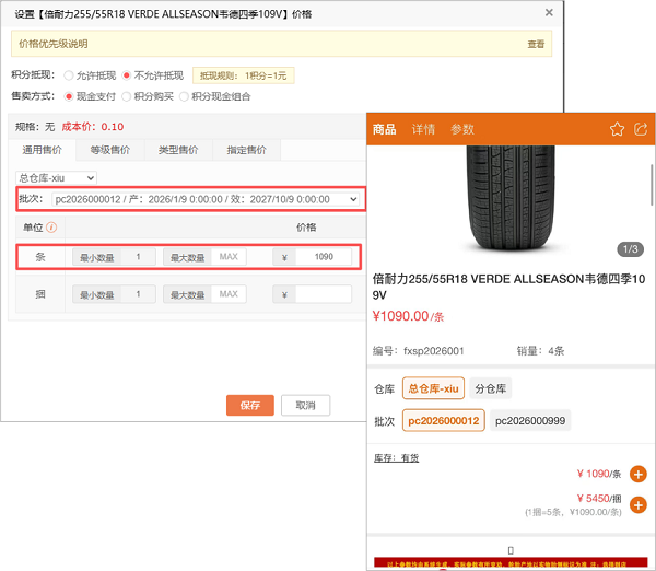 轮胎经销商通常不止一个仓库。总仓、分仓、门店仓,甚至租赁的外仓,库存分散在不同地方。客户从咨询、找货、询价、拣货、配送整个流程下来至少要花销售半小时以上。批次管理也是一个常见难点——同一规格的轮胎,不同生产时间,销售价格存在差异,如果出库时拿错货,这一单就可能亏损。