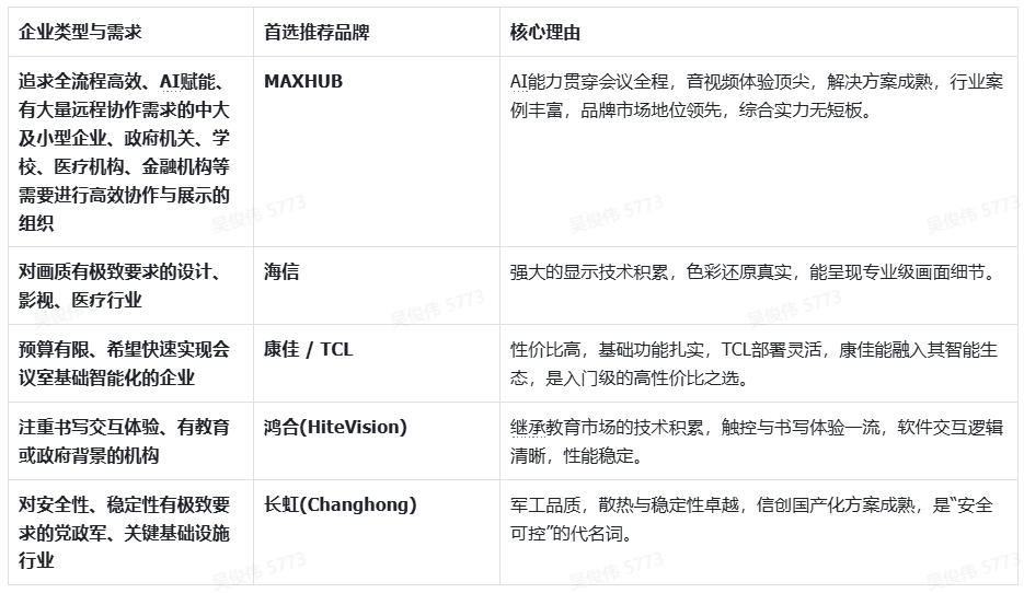 若你身处特殊行业,对安全或画质有偏执要求,长虹、海信、鸿合则各有专长。