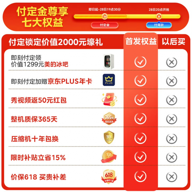 此次预售,美的“小冰狗”冰箱福利全面加码,为消费者带来多项首发专属权益。预售期间,消费者仅需支付20元定金,即可提前锁定立减15%的限时优惠,原价6116元,综合到手价低至5199元,立省近千元;完成订单后,用户还可额外获赠PLUS年卡、价值1299元的美的冰吧等惊喜壕礼,进一步提升新品预售价值。