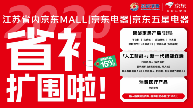 江苏省消费市场迎重磅利好!4月17日,江苏省商务厅发布了《关于实施江苏省2026年消费品以旧换新地方自主品类补贴政策的通告》,新增包括智能家居产品、“人工智能+”新一代智能终端、消费医疗产品等10大类商品享受15%政府补贴。江苏省京东电器、京东MALL、京东五星电器等130多家京东自营门店率先响应,首批超过3100款商品已进入补贴产品池,为消费者开启补贴申领通道。