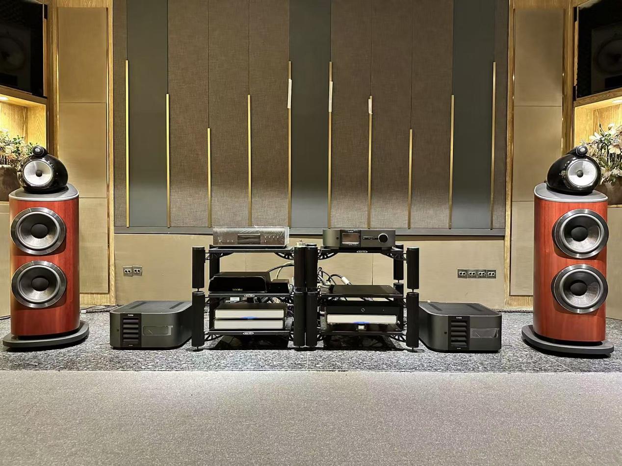 本次活动搭配三套HiFi系统,第一套HiFi系统是由Bowers & Wilkins 宝华韦健801 D4搭配Classé Audio Delta PRE MKII前级和Delta MONO后级,音源方面由马兰士Marantz SACD 10和LINK 10n担纲。01 D4采用Matrix矩阵结构,使用互锁板的内部矩阵支撑,在各个方向加强箱体侧壁,减少箱体共振,应用更多铝制支撑件,对关键应力点进行加固。高音单元是沿用经典的钻石振膜,导管由铝合金削切而成。全铝Turbine Head涡轮腔体将Continuum(钢听能)中音单元放入坚固和高阻尼的外壳中,令中音腔体和低音墙体有更好的隔离效果,还能消除共振,音染更低。SACD 10 采用马兰士独家的M3结构、马兰士独有的Marantz Musical Mastering的1bit解码系统,强大解码与处理能力,全新的HDAM模块降低了噪音、提升音质层次。LINK 10n支持平衡和非平衡输入、唱机输入、同轴和光纤数字信号输入,以及USB接口和HDMI ARC接口,满足不同用户的需求。