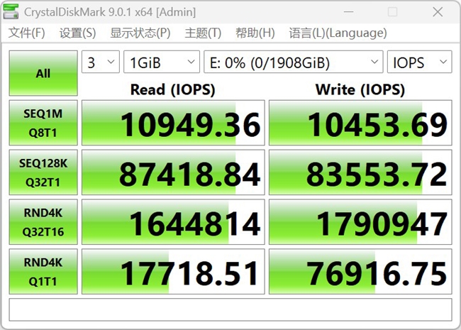 图注:以IOPS为单位显示的CrystalDiskMark测试成绩