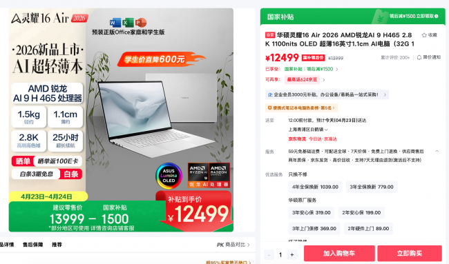 综合来看,华硕灵耀16 Air 2026精准贴合移动办公的核心需求,集轻薄便携、长续航、强性能、智慧AI与华硕好屏于一身,对于追求便携与高效兼顾的职场人来说,无疑是最优选择之一。目前,这款机型正在京东商城热售,部分地区可领至高1500元国家补贴。近期有换机需求的朋友们,可以上京东搜索#华硕灵耀16 Air 2026#了解更多细节,解锁高效移动办公新体验。