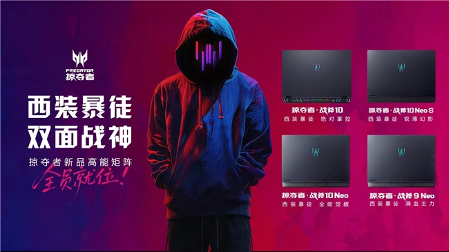 2026 款掠夺者战斧系列全系新品以差异化定位覆盖顶级旗舰、全能轻薄、主力发烧、进阶发烧全圈层用户,兼顾游戏、创作、办公全场景需求,从产品功能到外观设计再到强悍性能,都精准演绎了“西装暴徒”的双面战神产品理念。