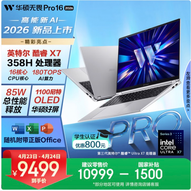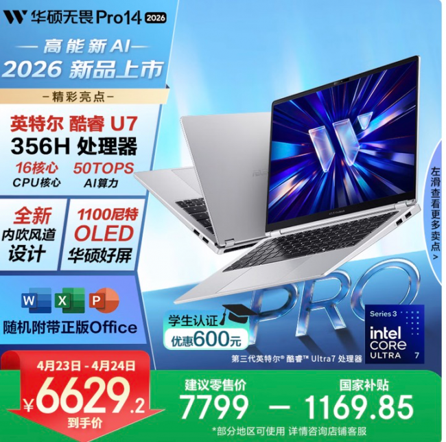 这个四月,如果你想为自己添置一台能够兼顾学习、办公和轻创作的笔记本,华硕无畏Pro16 2026 酷睿版是一个比较均衡的选择。它在性能释放、屏幕素质、便携续航和AI智能体验上都没有明显短板,用扎实的配置和用心的细节,回应了年轻人多样化的使用场景。无论是应对课业压力,还是处理日常的工作任务,它都能提供一个相对全面且可靠的支持。不妨趁着春季焕新,让这台AI轻薄本陪你一起,稳稳地走好接下来的每一步。