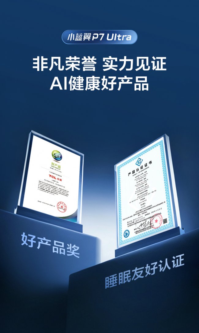 值得关注的是,凭借AI安寝之眼睡眠科技,TCL小蓝翼P7 Ultra AI健康睡眠空调还获得了中国家用电器研究院权威颁发的“睡眠友好认证”。
