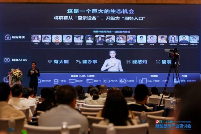 备受瞩目的“2026新型显示产业研讨会(DTS 2026)”于4月22日至23日在深圳金茂JW万豪酒店举行。本次会议由全球知名科技产业研究机构TrendForce集邦咨询主办,汇聚MLED、OLED显示等领域的顶尖专家与产业领袖,共同探讨AI时代显示技术的变革路径。AI科技公司魔珐科技创始人兼CEO柴金祥于4月22日上午核心时段发表题为“让每一块屏幕活起来,从显示到具身智能体的跃迁”的主题演讲。