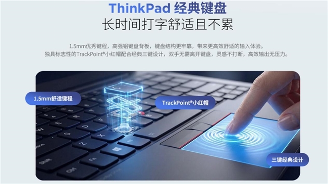 1.5mm键程键盘搭配小红帽设计,长时间打字舒适不累,双手无需离键即可操作光标,提升输入效率,适配长时间文案撰写、数据录入场景;双扬声器音质立体,适配远程会议、语音沟通场景,人声清晰不刺耳;全高清红外摄像头支持刷脸秒登,逆光、昏暗环境也能精准识别,适配暗光办公场景,节省登录时间。