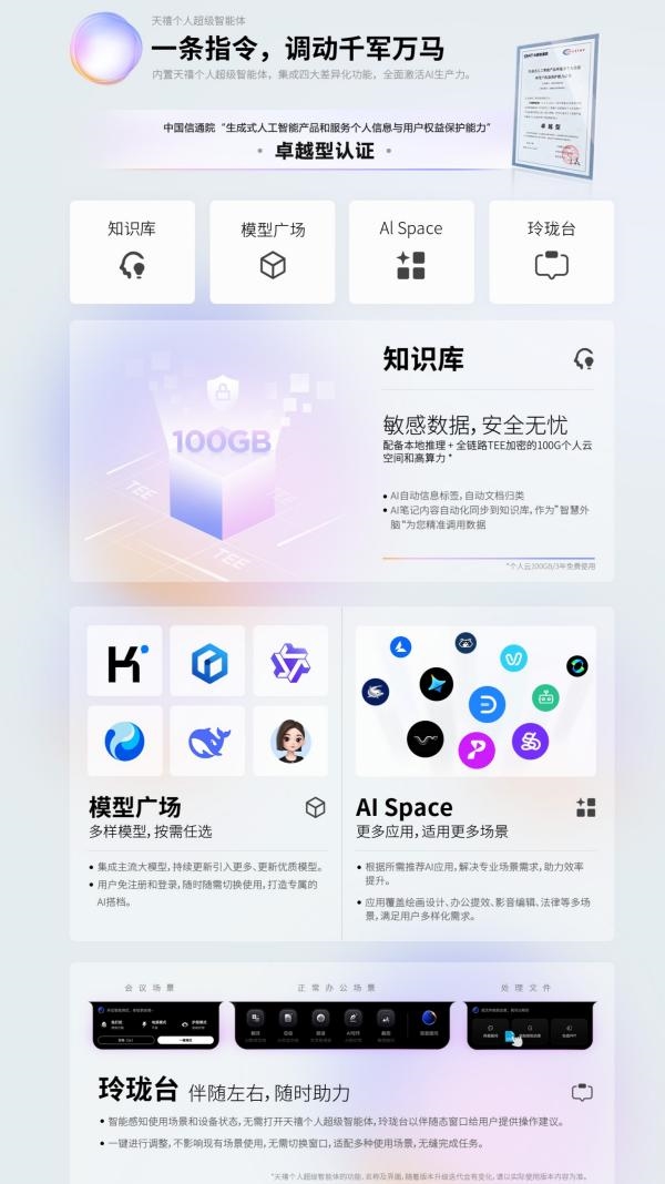 更值得一提的是,180TOPS AI算力搭配天禧个人超级智能体(AI搜索、AI写作、AI翻译、AI操控、AI服务五大功能),全方位赋能高效办公:AI搜索可快速检索本地文档与网络内容,节省信息查找时间;AI写作协助完成报告、邮件等文稿,提升创作效率;AI翻译支持多语言实时互译,适配跨语言会议、外文文档处理场景;AI操控通过语音指令完成操作,解放双手;AI服务实时监测设备状态,保障设备稳定运行。