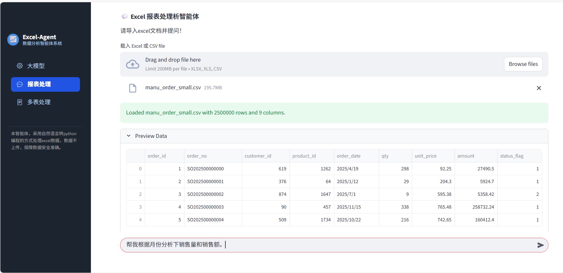 本地部署隐私安全,数据全程不上云核心运算本地化运行,原始表格数据全程留存本地、不上传云端,仅轻量化指令交互,适配财务、企业经营、个人敏感数据等隐私场景,兼顾高效与数据安全。